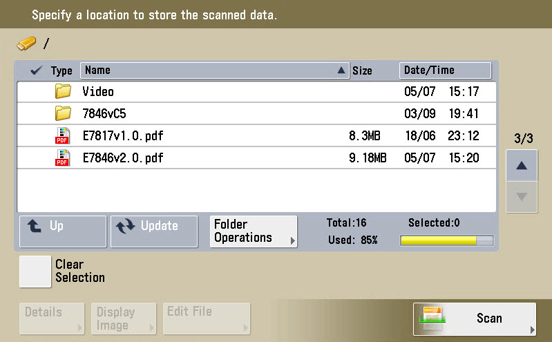 Select a folder on your USB stick and tap on [Scan].
