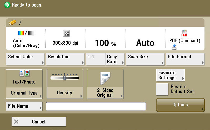 Press the green button. Your scanned document is stored on your USB stick.